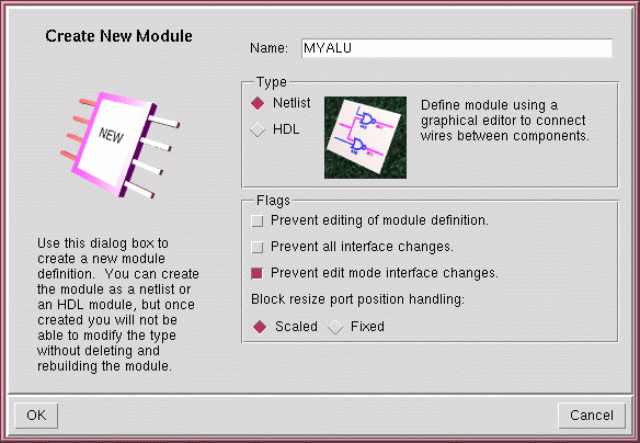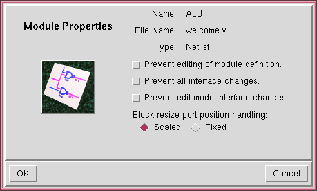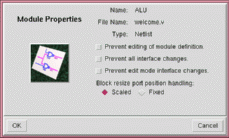 same properties that can be specified through the module creation and module properties dialog boxes.