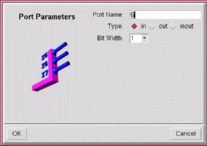 Output.." or "Add InOut..". The Port Parameters dialog box will
