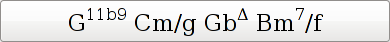 Display a sequence of chords. The chords are separated by whitespace. Each chord consist of up to four parts, and part two to four are optional: