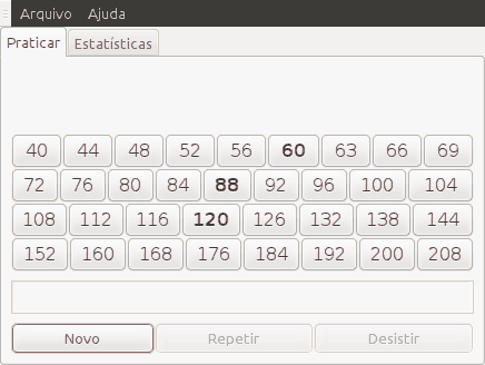 O programa tocará uma marcação de tempo, como um metrônomo. Você deve tentar adivinhar as batidas por minuto. Cada botão representa um tempo, e o programa tocará somente em tempos que tenham um botão com texto em negrito. Clique com o direito nos botões para mudar o estado de uma marcação de tempo.