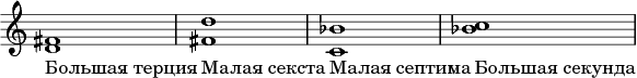 Ниже приведены два примера: большая терция обращается и превращается в малую сексту, а малая септима обращается и становится большой секундой.