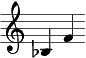 Мы помним из Рисунок 3.7, что интервал B-F - это уменьшенная квинта. Нижней ноте на Рисунок 3.8 предшествует бемоль, что делает интервал полутоном больше и превращает интервал из уменьшенной квинту в чистую.